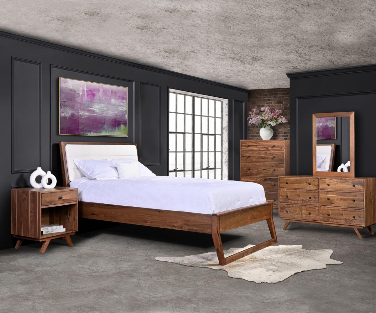 Features: • Upholstered headboard detail • Solid wood slats for the mattress to rest on • Slats are dovetailed for the strongest joint possible