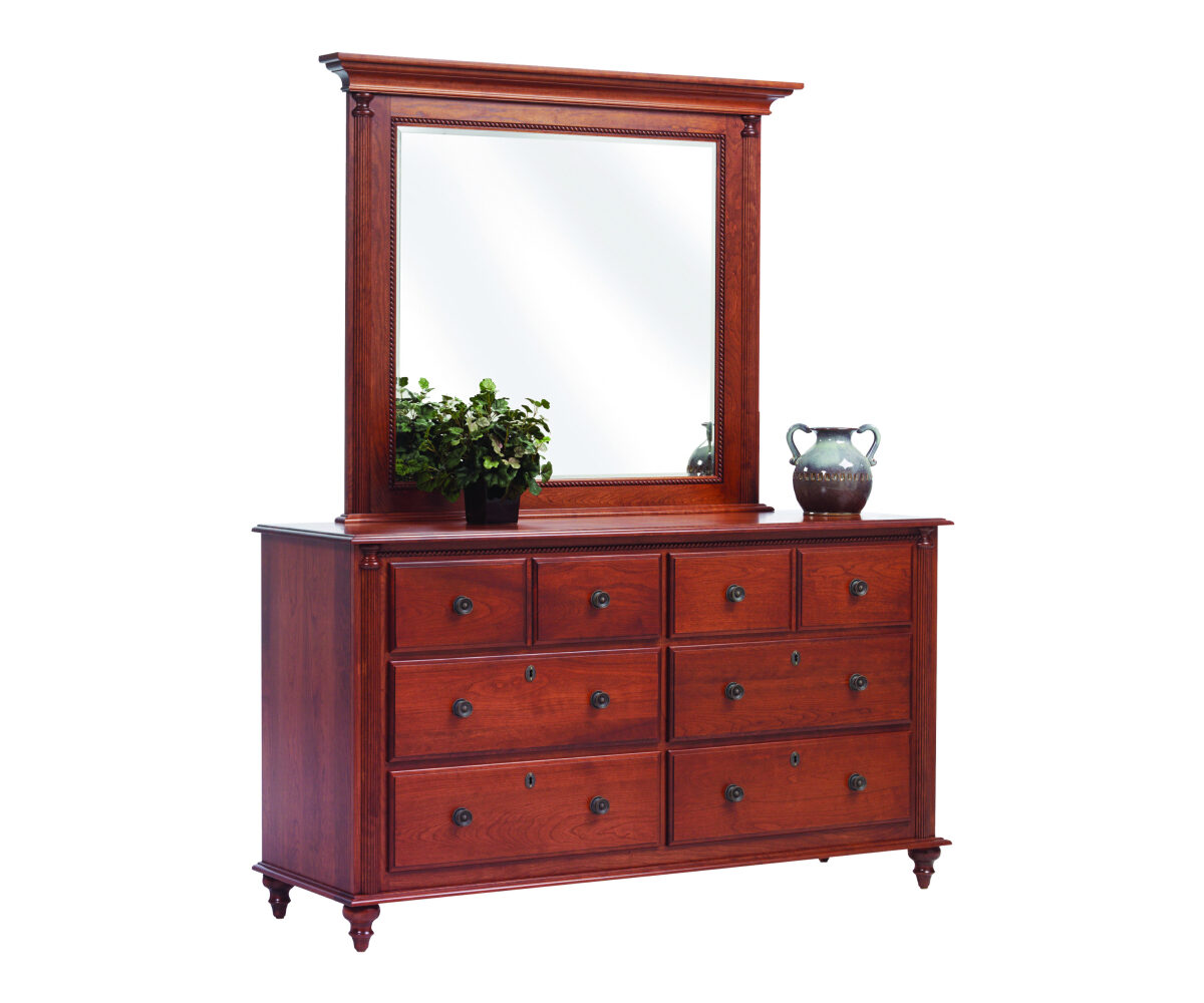 The Für Elise Bedroom is one-of-a-kind. Solid hardwood insets laced with intricately trilled moldings with pillars and epistles of like workmanship, crowned with entablatures a full 3 4” thick. Deep seated drawers are standard with concealed, fully extending ballbearing slides. We have photographed the Für Elise in cherry with Brandywine glaze and Washington stain, but we’ll make Für Elise your flavor with the many stain colors and a handful of glazes, paints and distresses we have available.