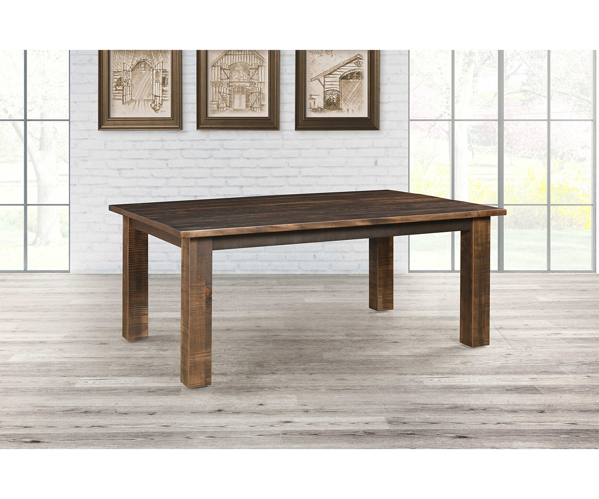 Features: • Sawmark detail on table • 12″ wide leaves • Wooden slides to extend table • Standard dining height