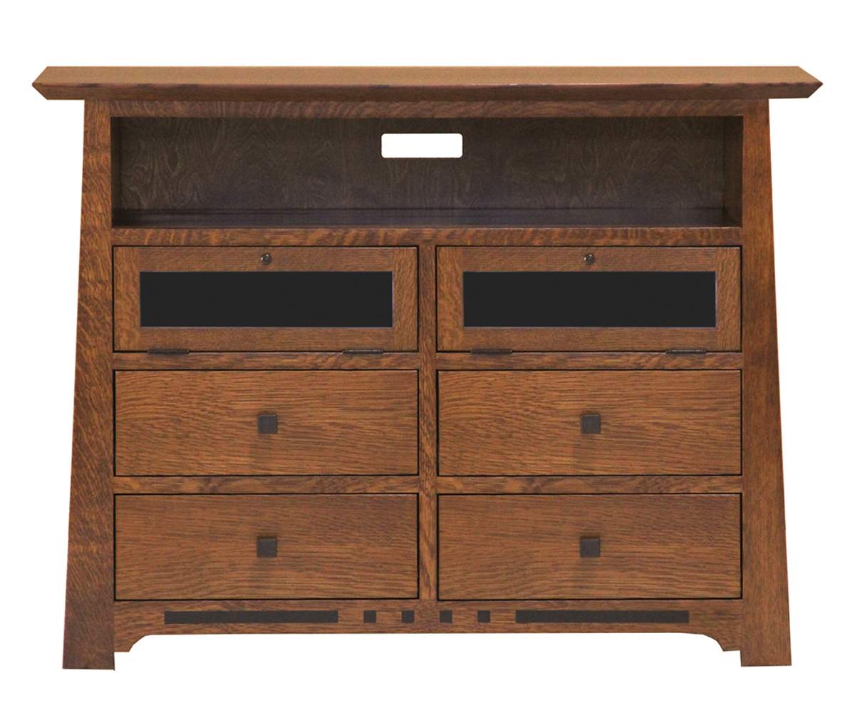 Features: • Flip down opening above drawers • Dovetailed drawers • Under-mount soft close drawer slides • Soft close feature gently shuts the drawer