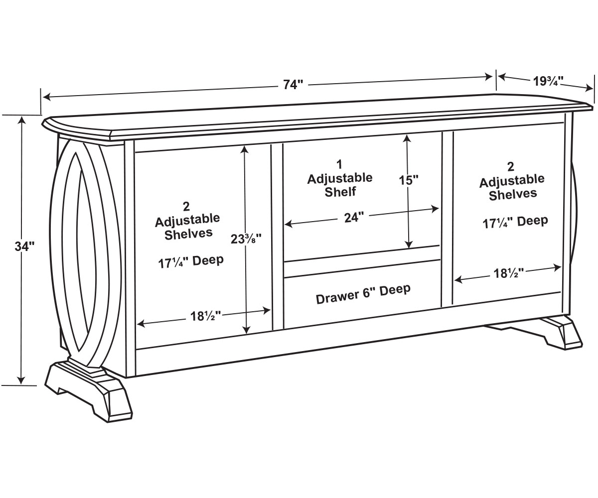 Features: • Curved drawer front detail • Soft close door hinges • Two adjustable shelves behind each door • Dovetailed drawer • Full extension drawer slides