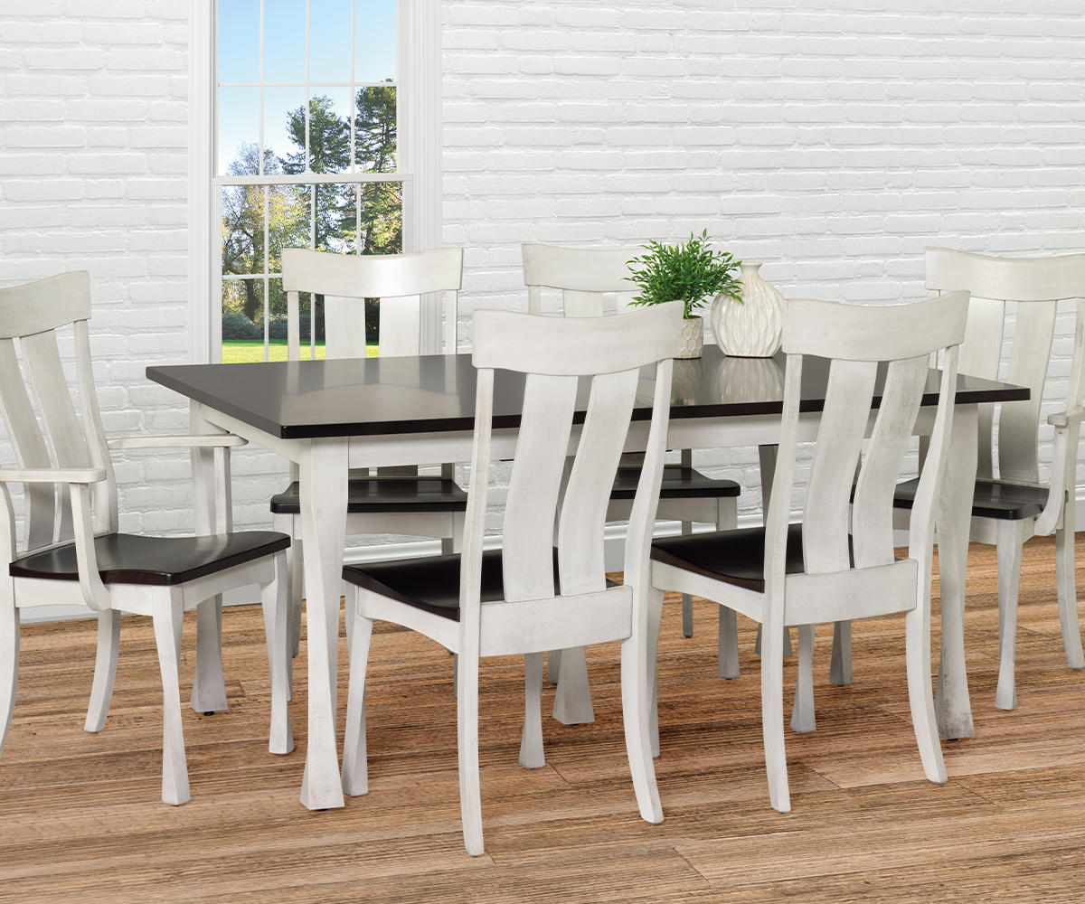 Table shown 42 x 60″ in maple with onyx top and frosted cotton signature combination on base.